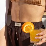 El short mawa brownie esta fabricado con tejido de Algodón Orgánico 100%. Diseño tipo calzoncillo, con goma a la cintura y botones de plástico reciclado. Combínalo con lo que quieras esta temporada.