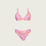 Der Caloca Print-Bikini besteht aus einem Triangel-Oberteil mit verstellbaren Schnürsenkeln für mehrere Positionen und einem wendbaren brasilianischen Slip, beide in einem lustigen und originellen Animal-Print in warmen Farben.