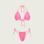 The Bikini Salanta Pink is made with recycled Polyamide fabric ECONYL®. This set is composed of a triangular topic to the lazadas to adjust and gathered minimum coverage with adjustable coverage, both in a delicate baby pink, in our groove, soft and elastic fabric.