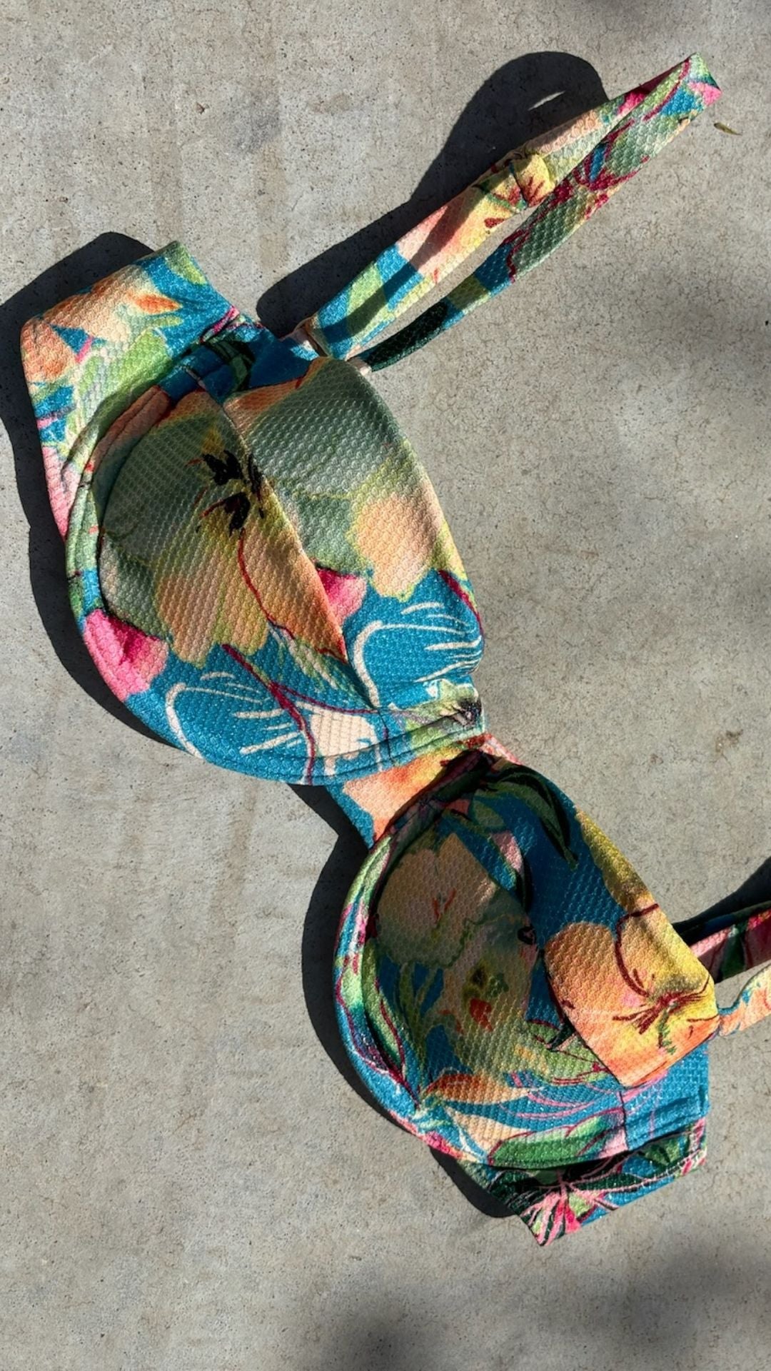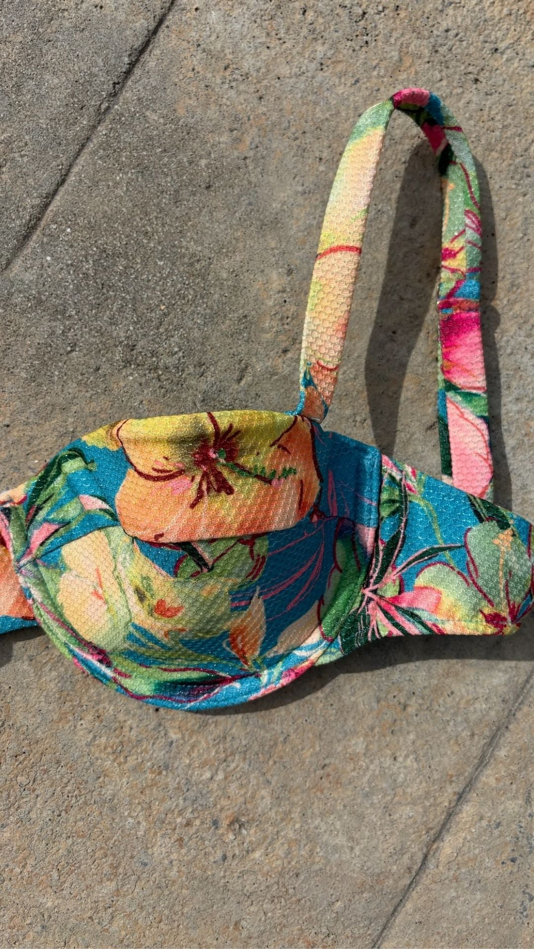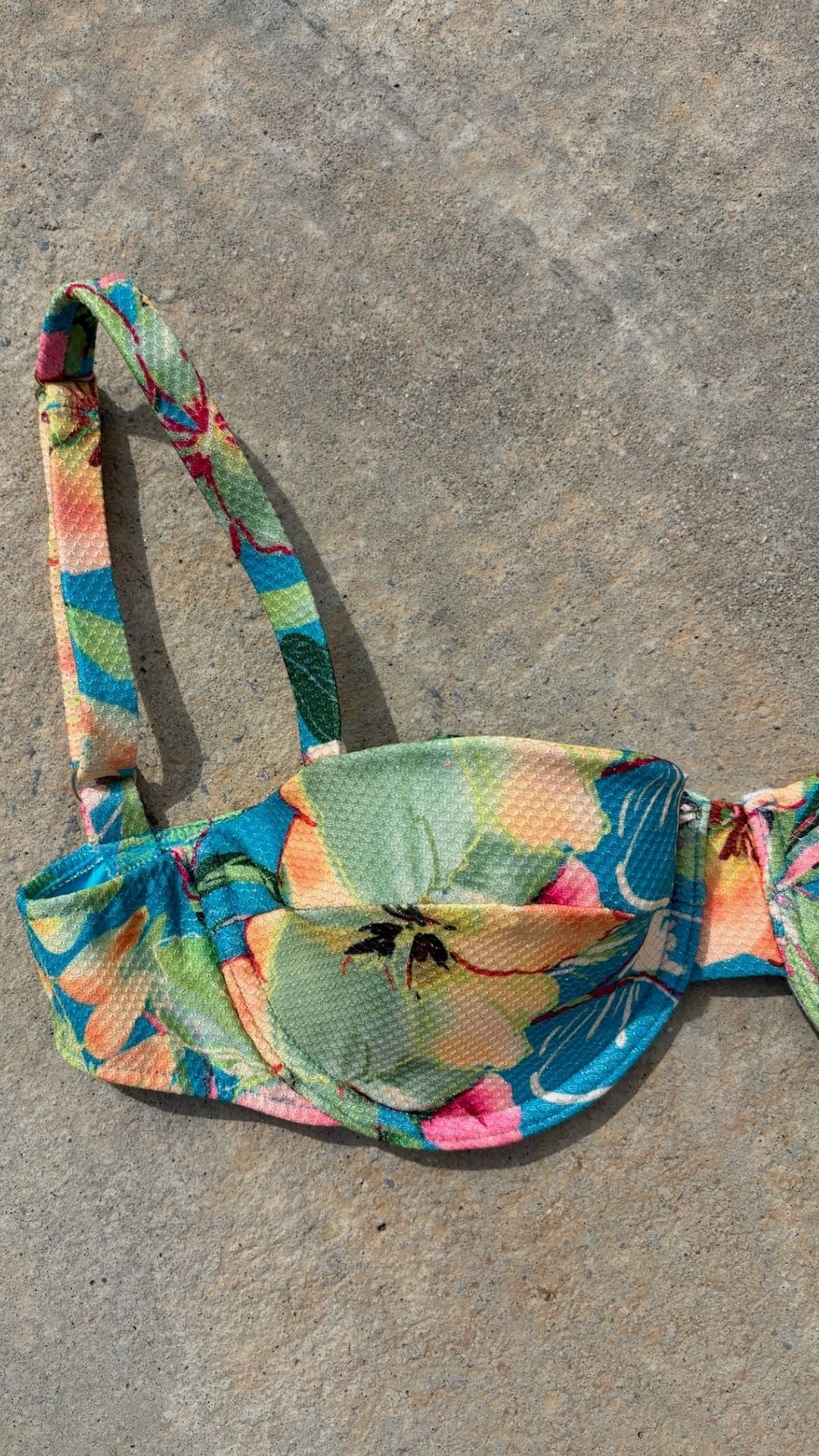 El bikini Bimba Aloa está confeccionado con tejido de poliamida reciclada ECOWAVE® y estampación digital sostenible ZEROWATER. Compuesto por un top tipo balconette con aro, tirantes regulables y cierre de lazada en la espalda junto con una braguita de corte clásico que ofrece comodidad y un ajuste favorecedor. Ambos en un print original de Circu lleno de color con motivos florales en textura de piqué y acabado lúrex.
