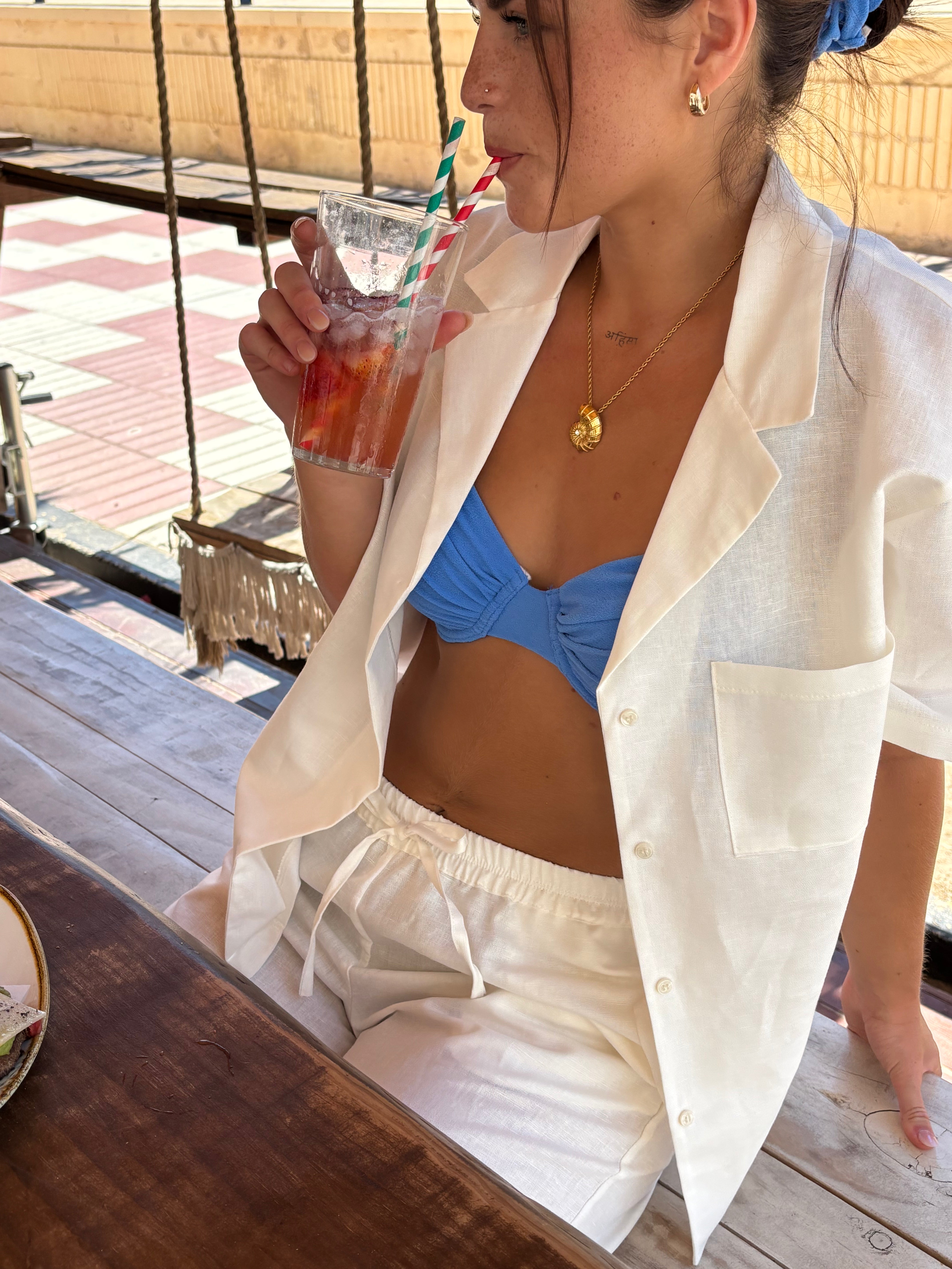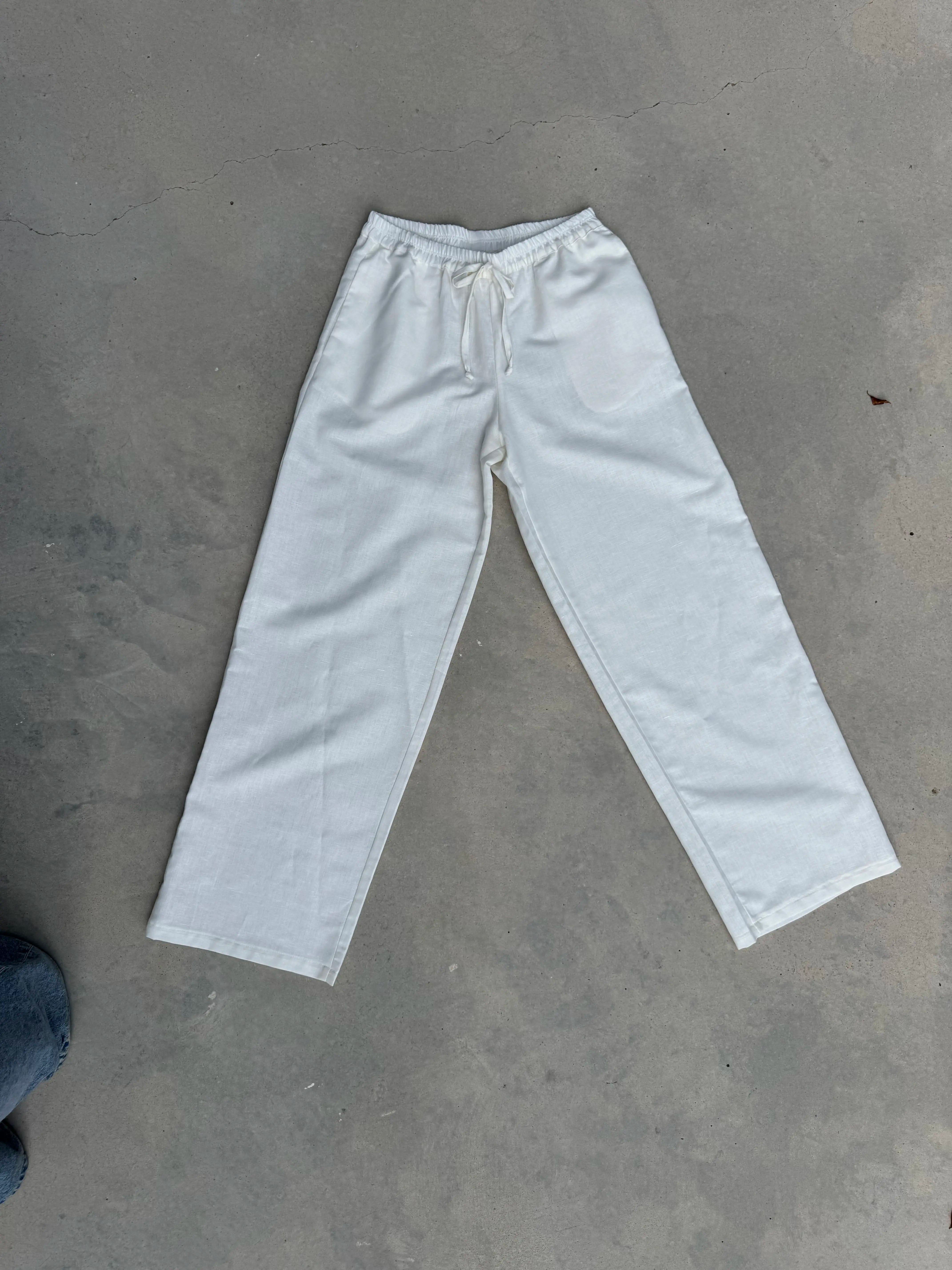 El pantalon largo merengue esta fabricado con tejido de Algodón Orgánico 100%. Diseño tipo calzoncillo, con goma a la cintura y botones de plástico reciclado. Combínalo con lo que quieras esta temporada.