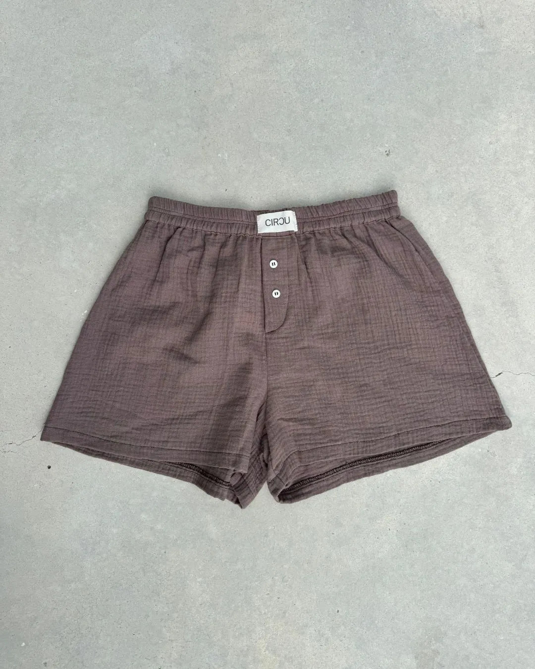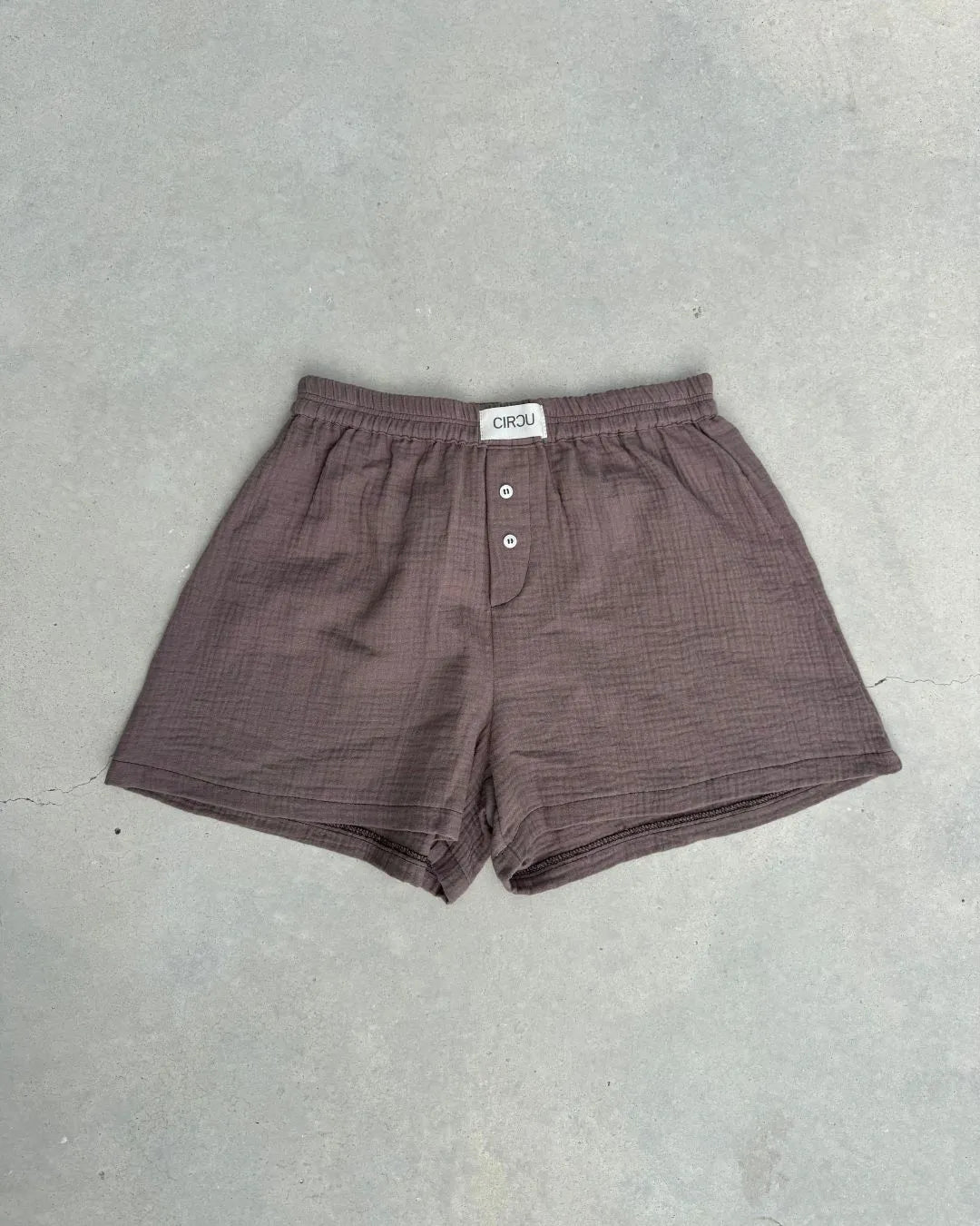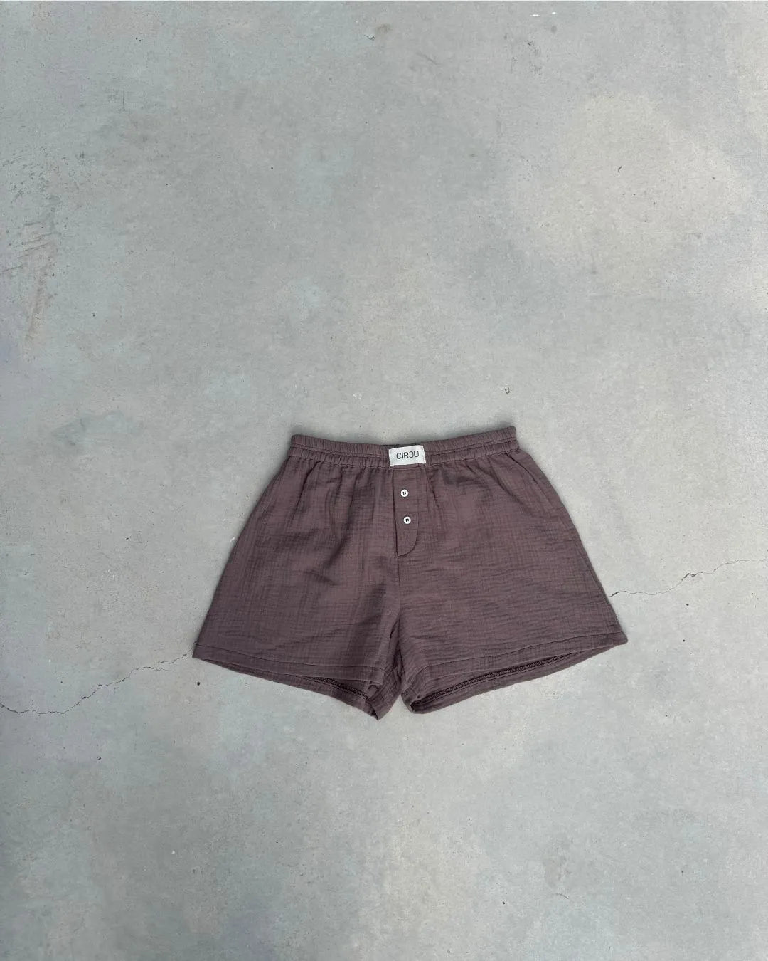 El short mawa moca esta fabricado con tejido de Algodón Orgánico 100%. Diseño tipo calzoncillo, con goma a la cintura y botones de plástico reciclado. Combínalo con lo que quieras esta temporada.