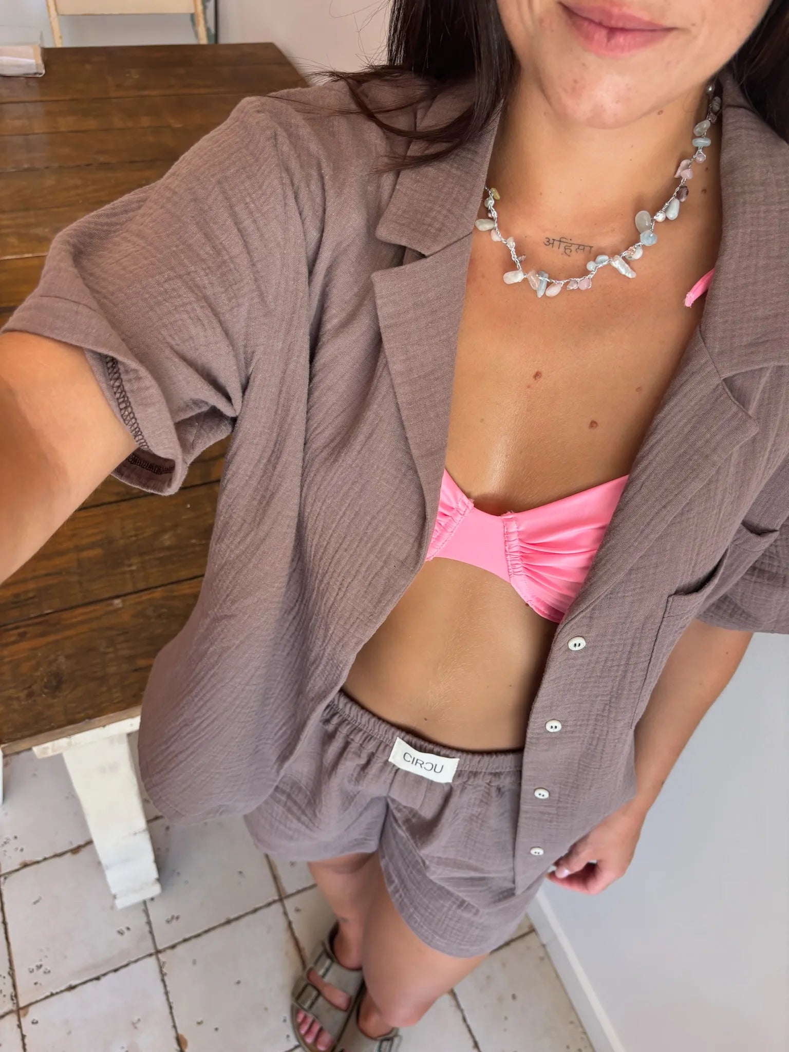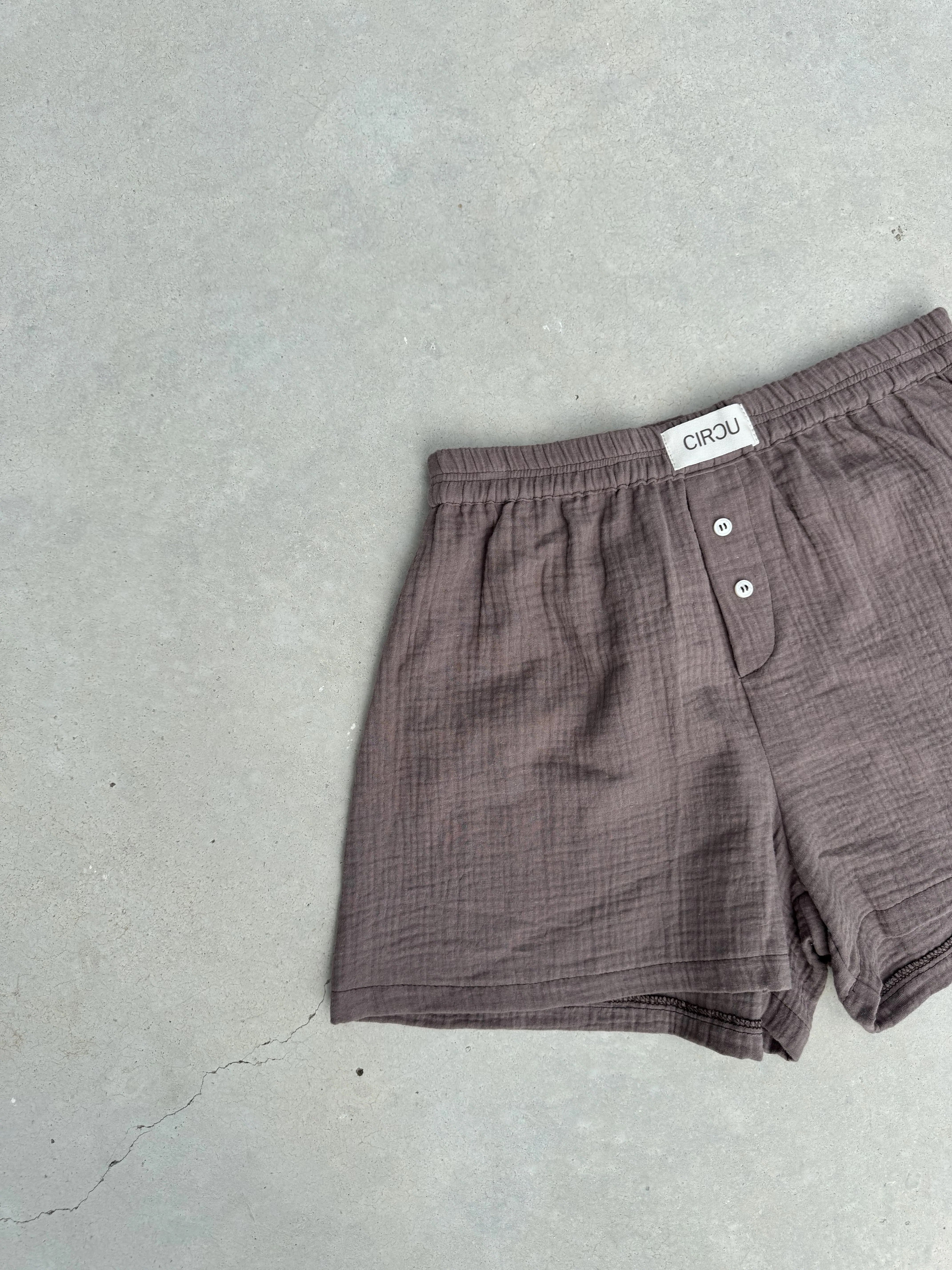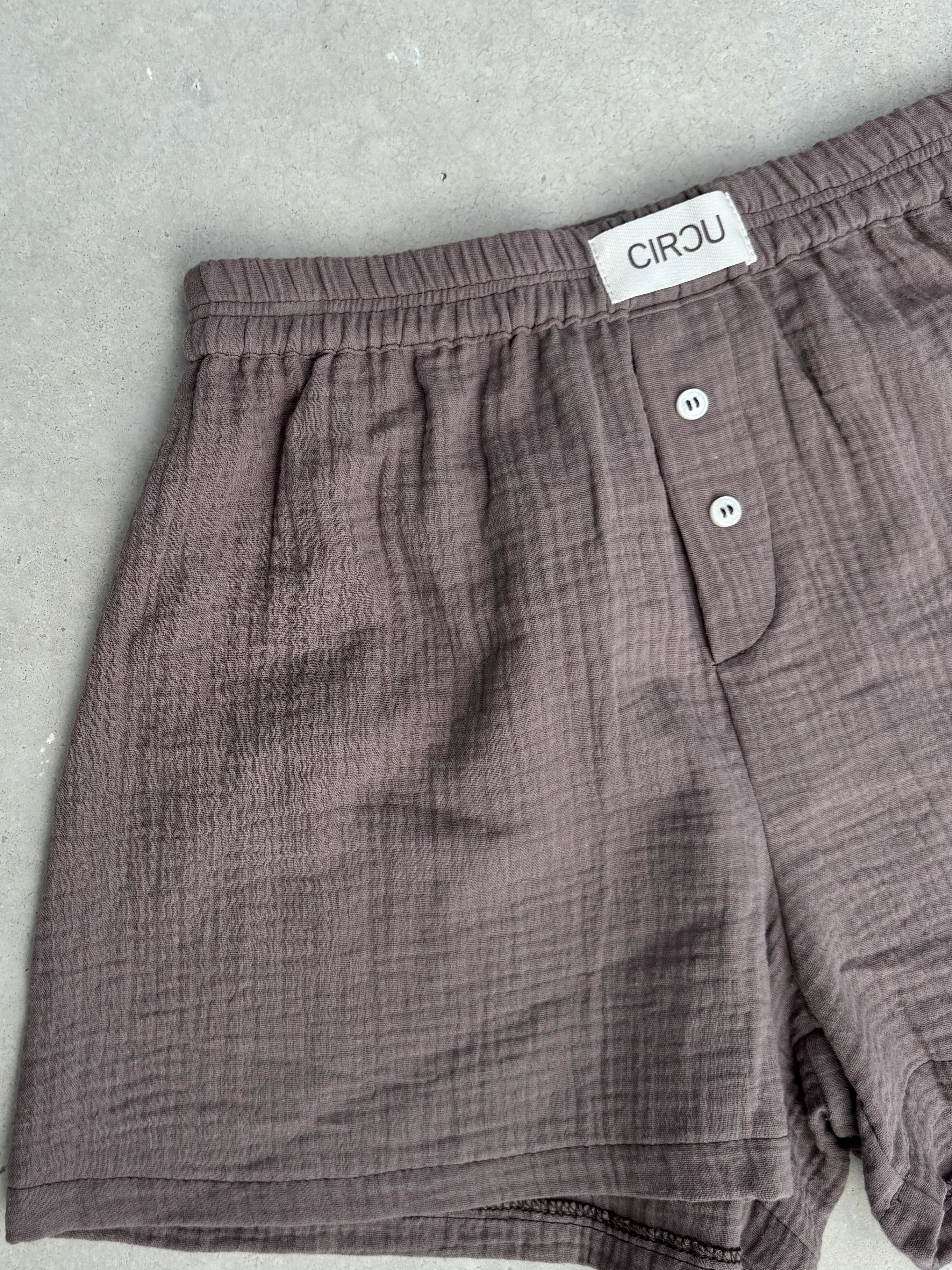 El short mawa moca esta fabricado con tejido de Algodón Orgánico 100%. Diseño tipo calzoncillo, con goma a la cintura y botones de plástico reciclado. Combínalo con lo que quieras esta temporada.