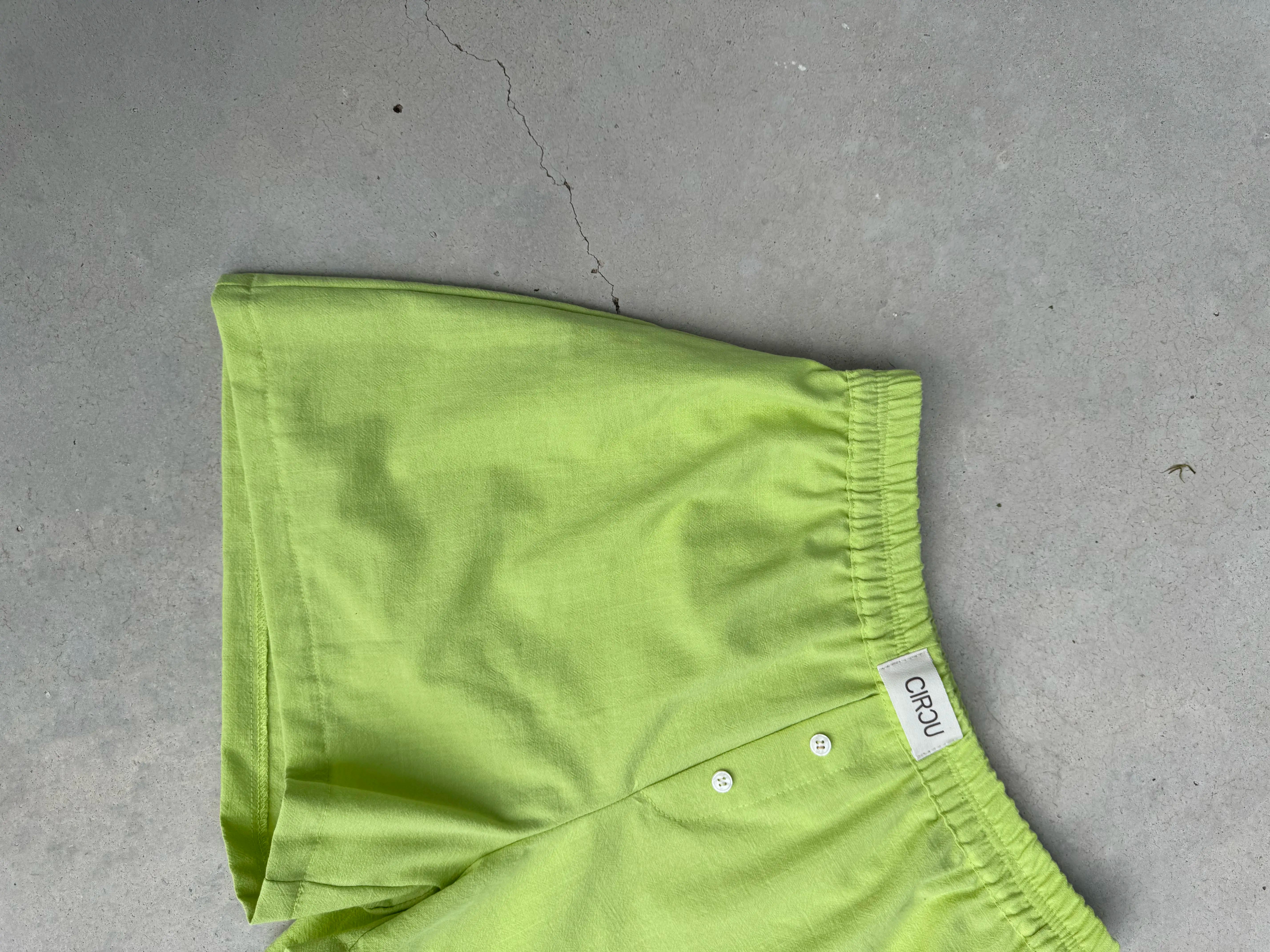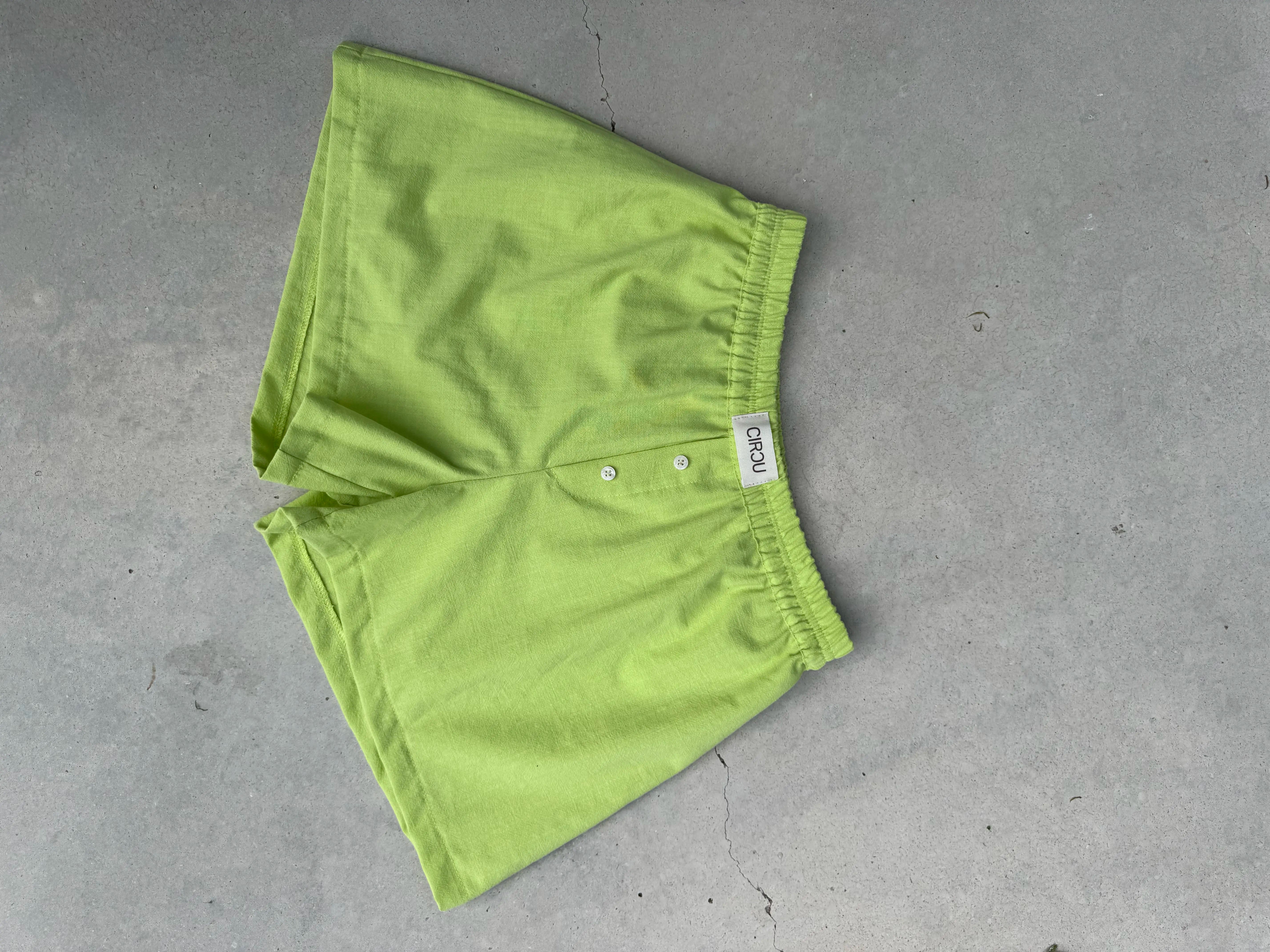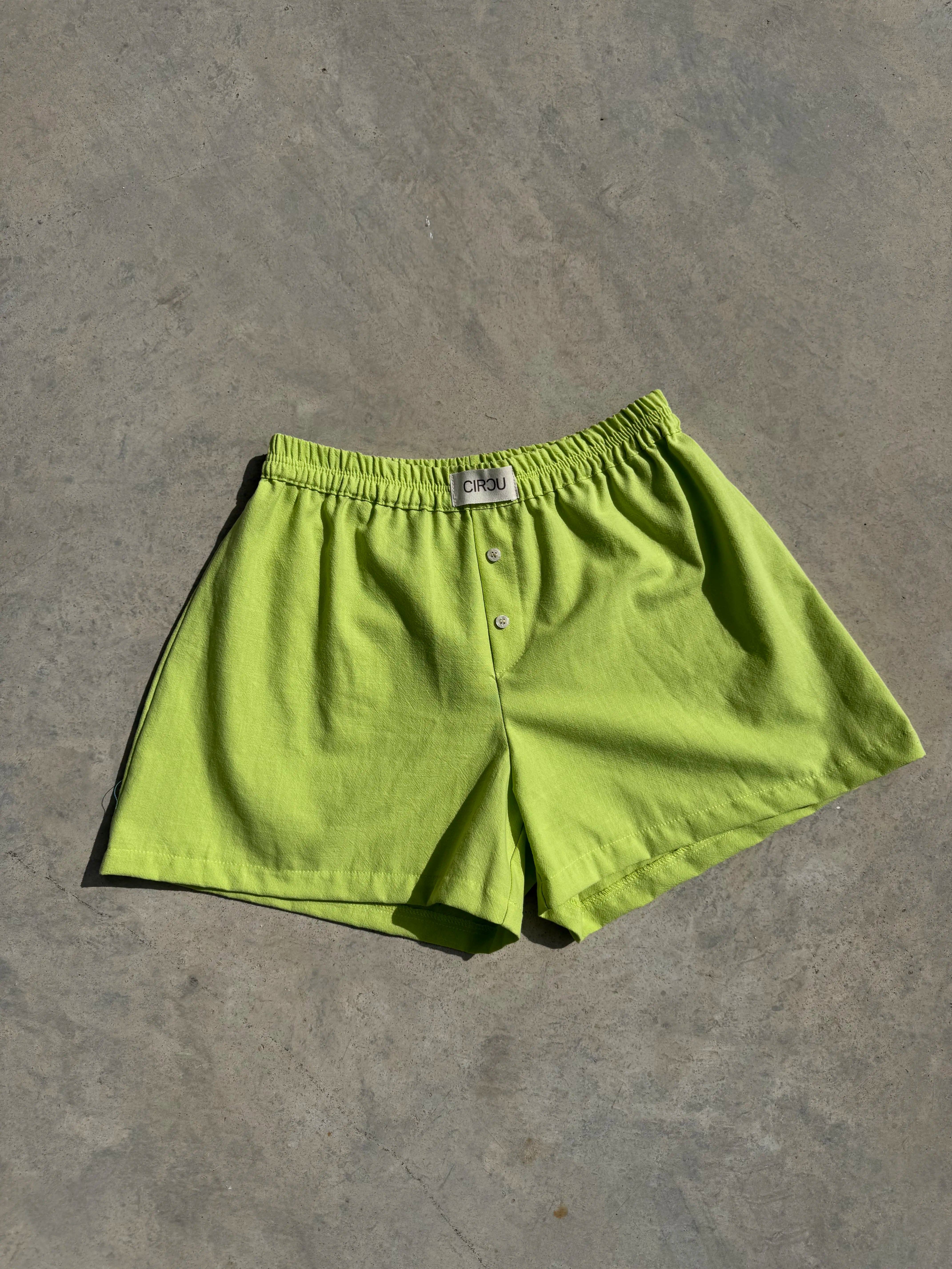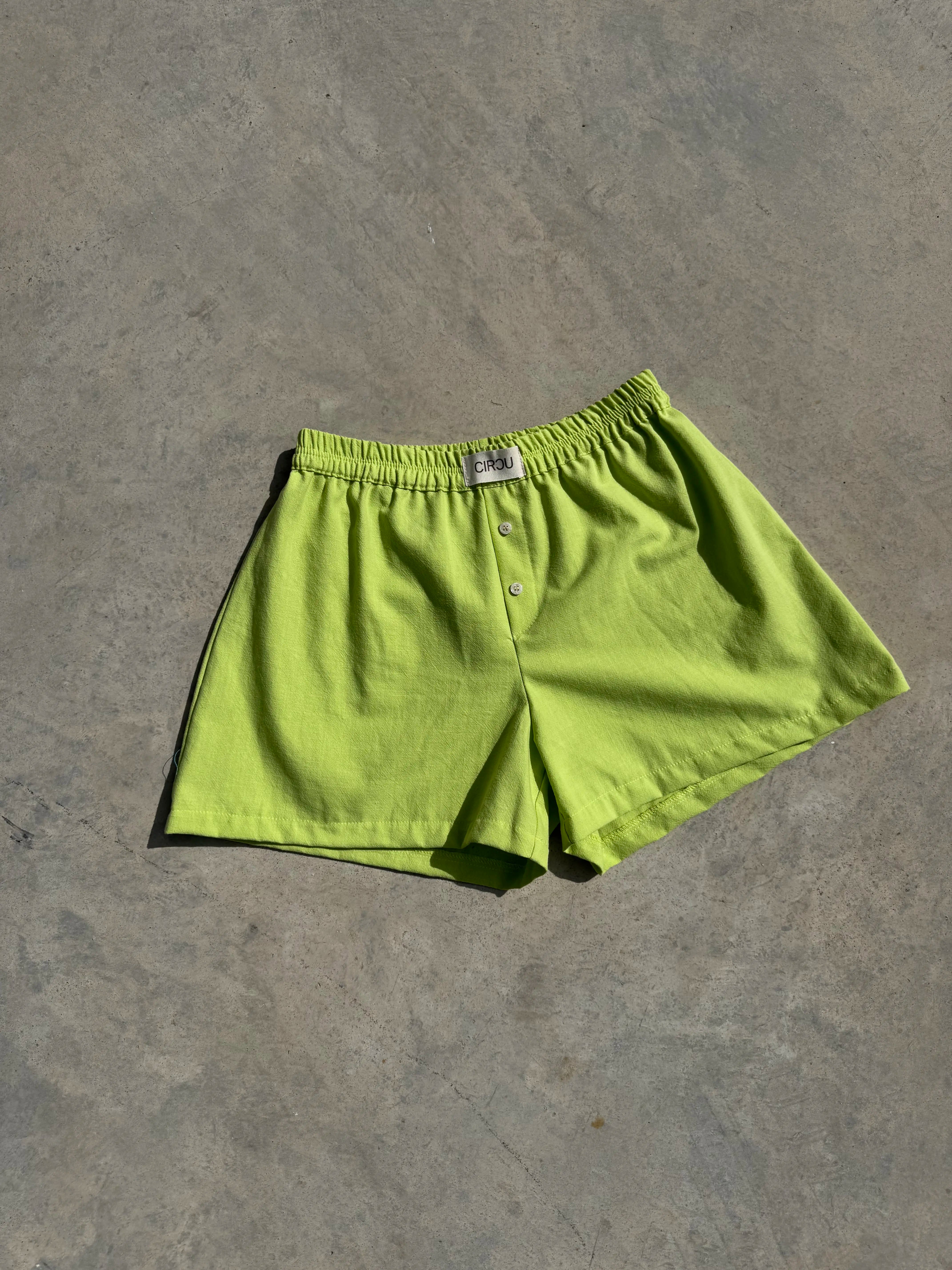 El short mawa lima esta fabricado con tejido de Algodón Orgánico 100%. Diseño tipo calzoncillo, con goma a la cintura y botones de plástico reciclado. Combínalo con lo que quieras esta temporada.