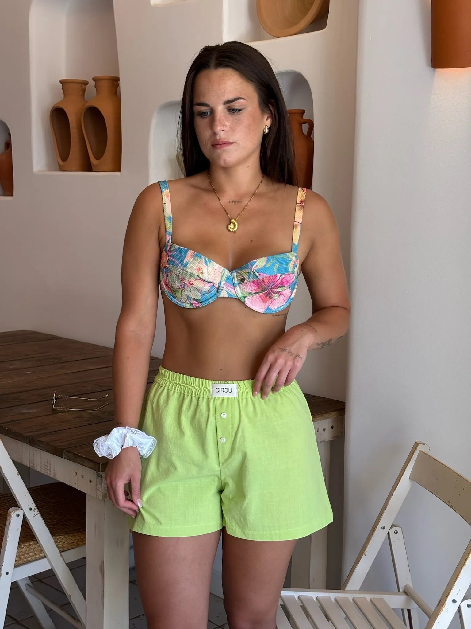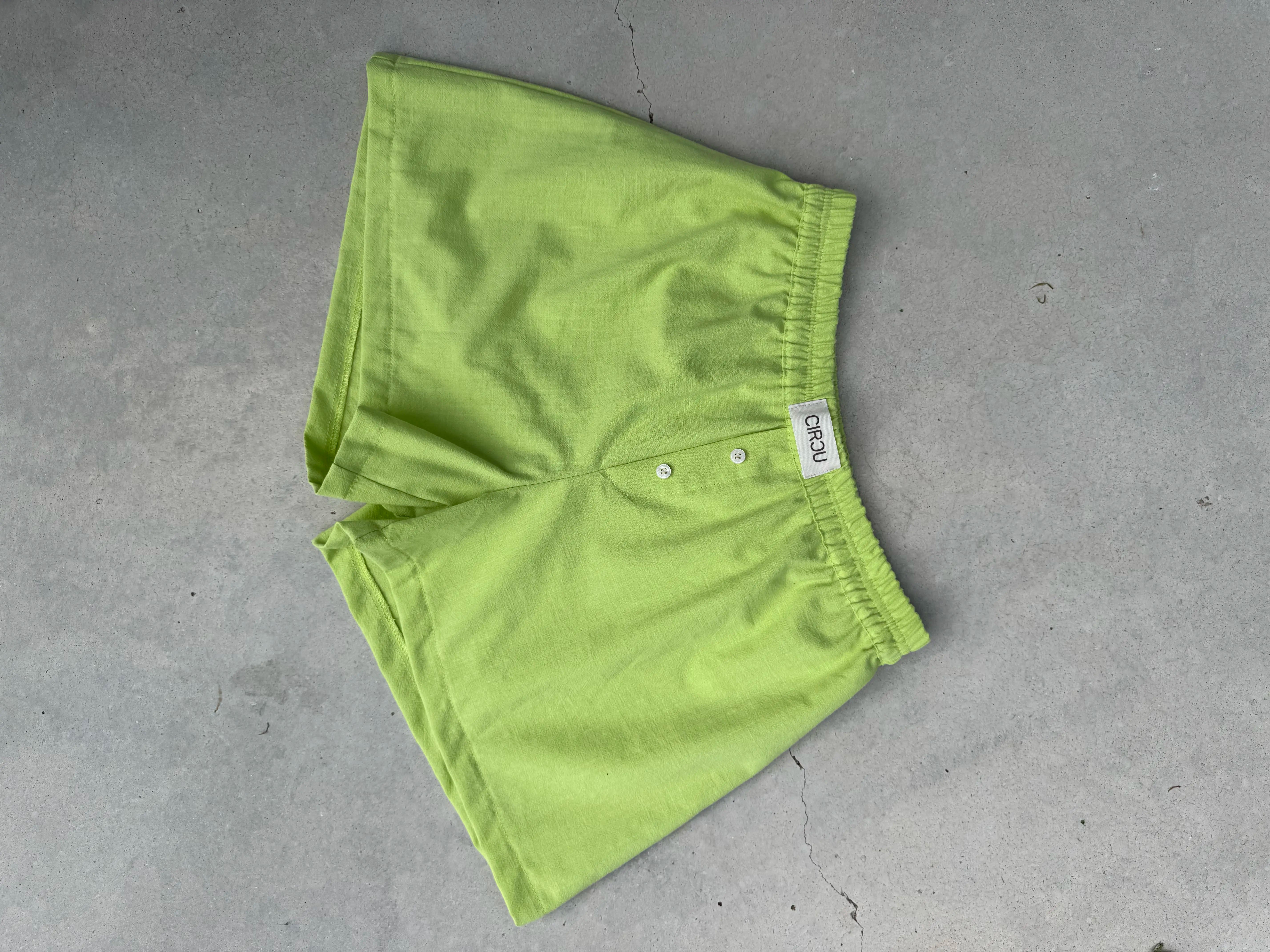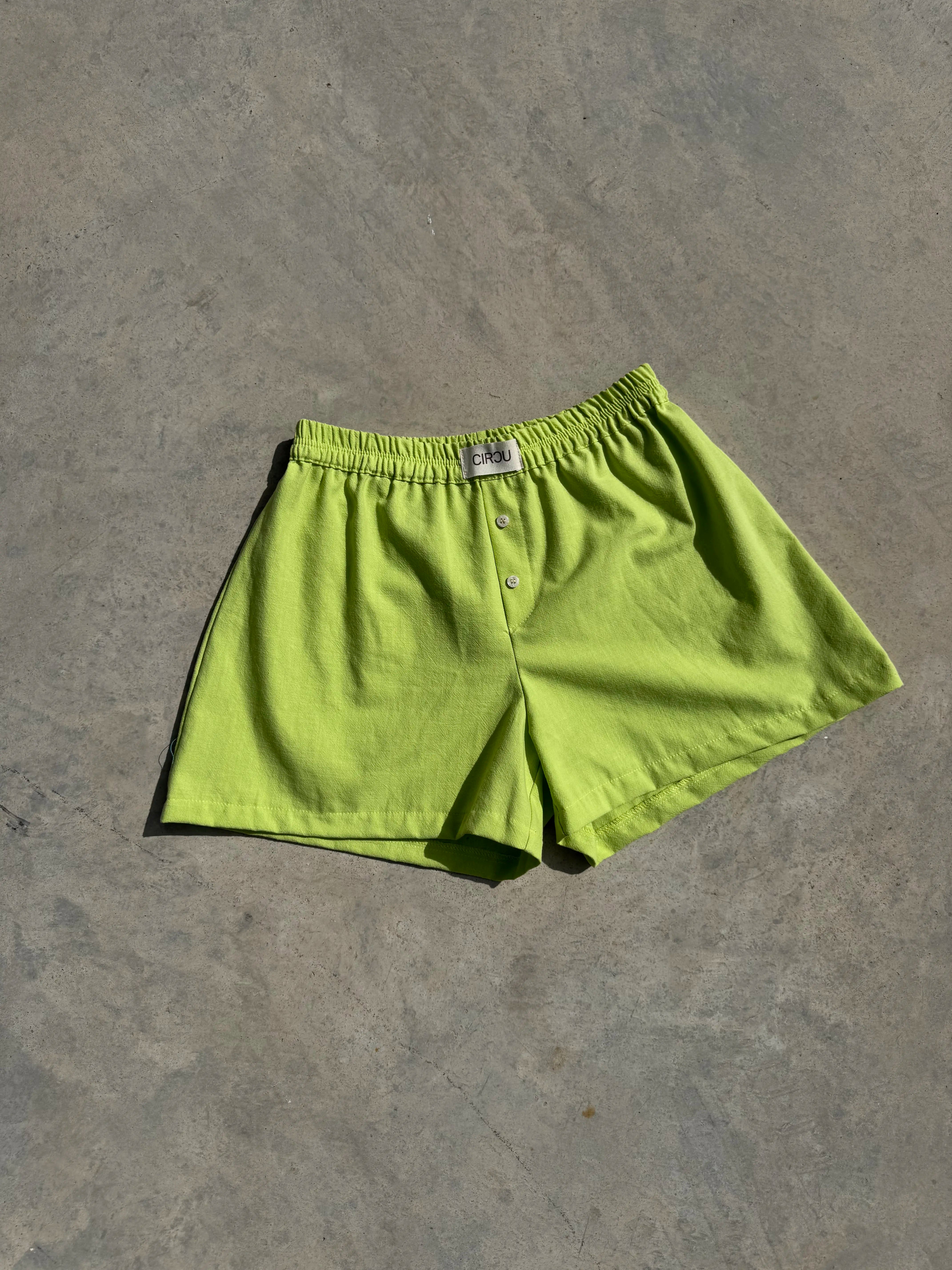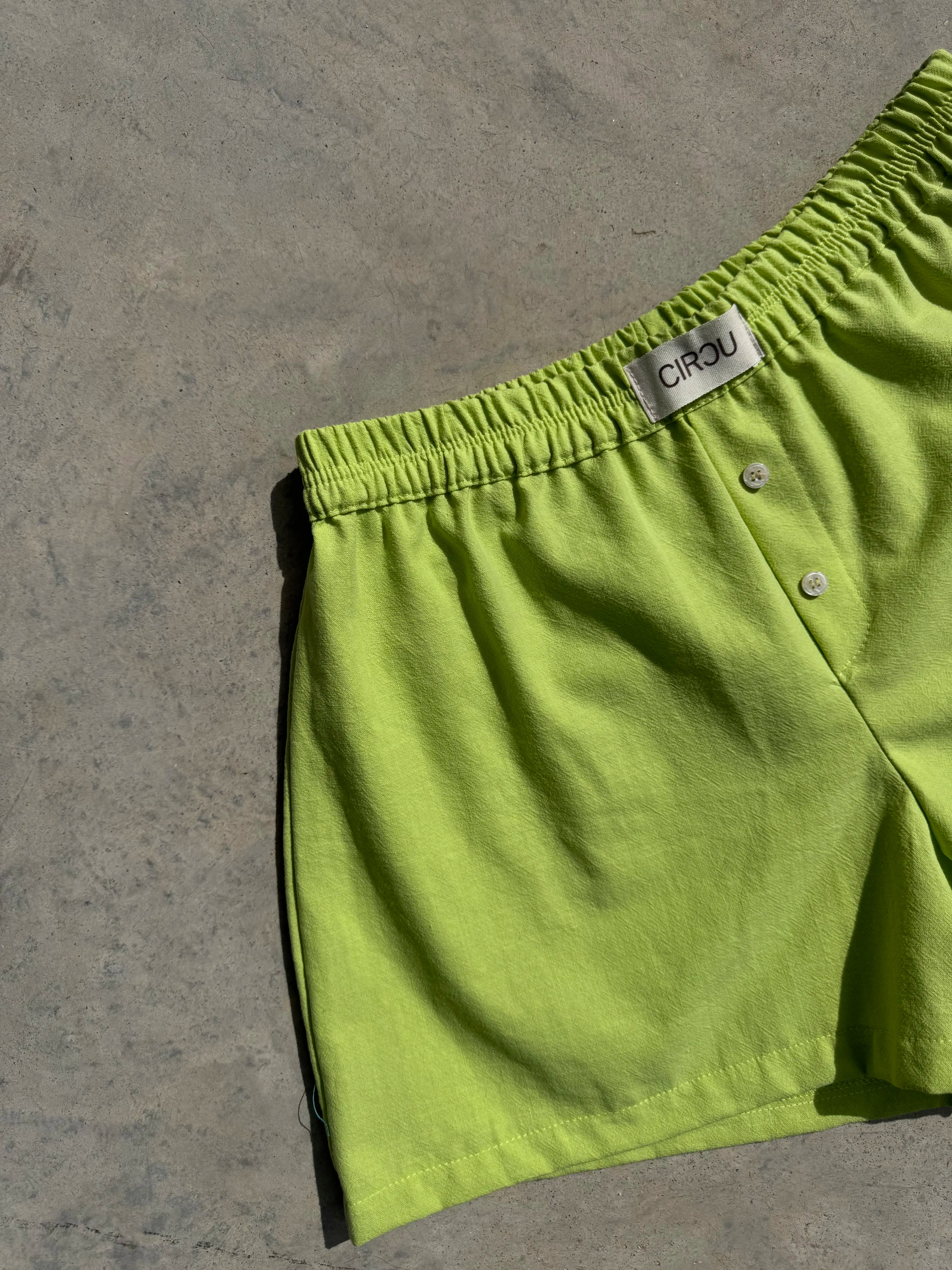 El short mawa lima esta fabricado con tejido de Algodón Orgánico 100%. Diseño tipo calzoncillo, con goma a la cintura y botones de plástico reciclado. Combínalo con lo que quieras esta temporada.