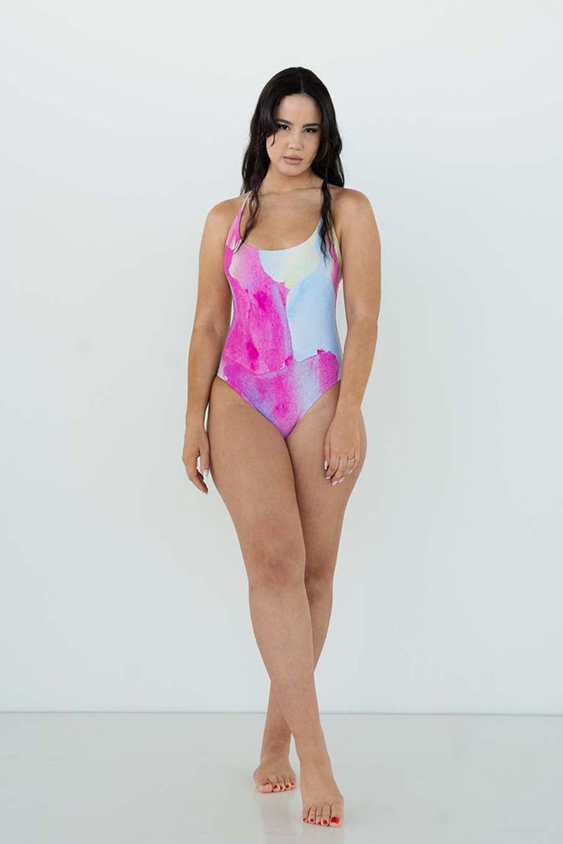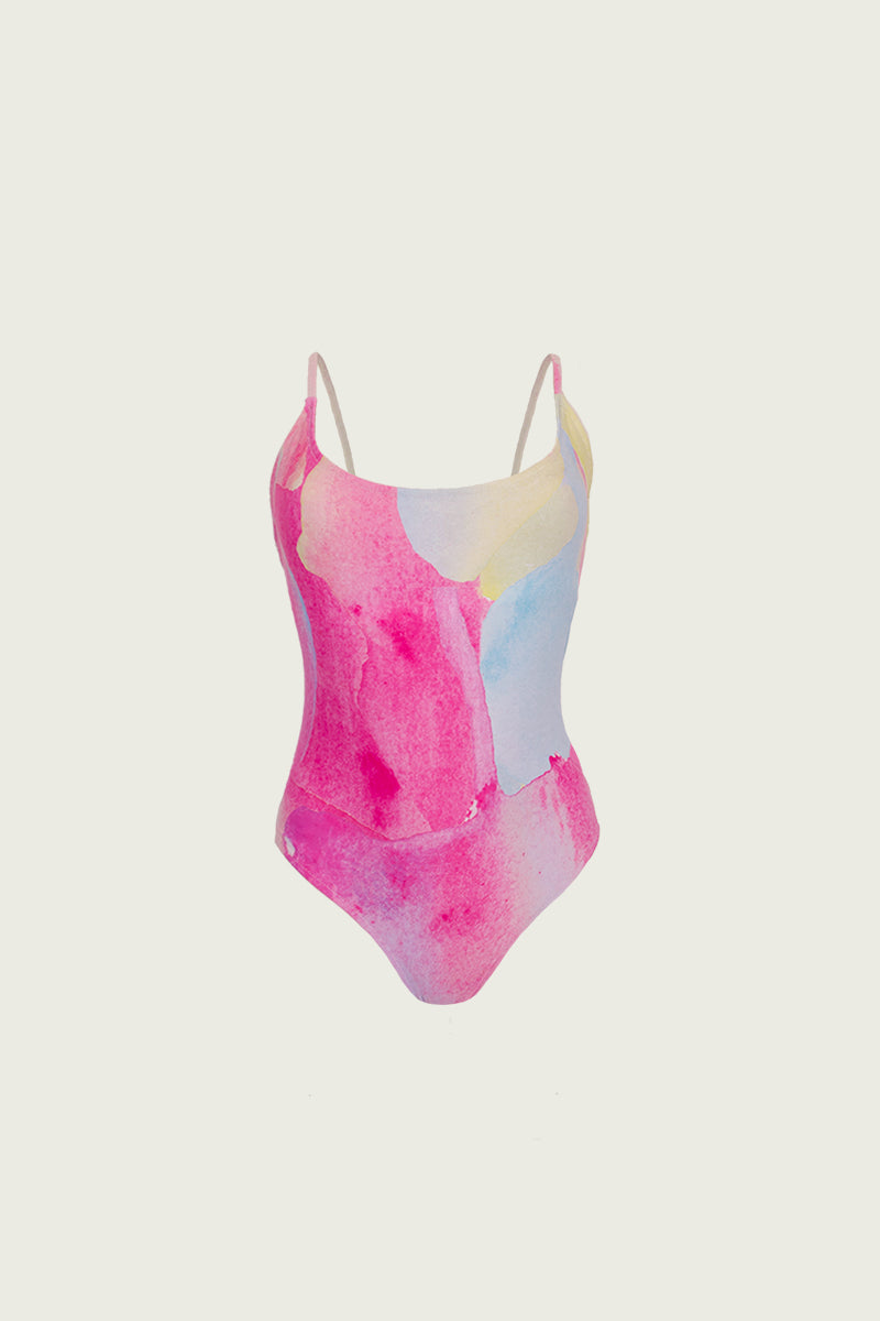 The nilla garatusa swimsuit is made with ECONYL® recycled lycra fabric. With a round neckline and open back, it has adjustable straps and medium coverage, with an exclusive print inspired by fun and the Mediterranean colors of the sunset. This swimsuit is a perfect ally for a day at the beach combined with a pareo.