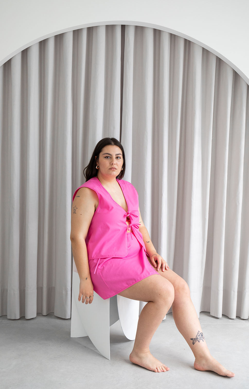 The Nina Rose skirt is made from 100% organic cotton fabric. Sarong-style skirt design with ties to adjust at the waist.